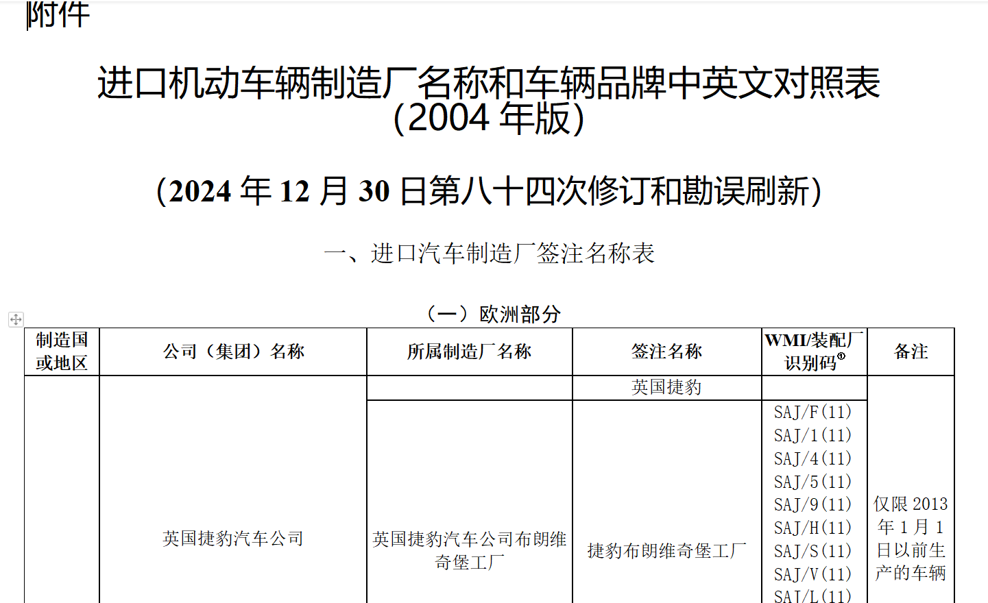世界制造厂识别代码(WMI)是车辆识别代号(VIN)的一部分,用于识别车辆的制造厂。WMI由三个字符组成,其中第一个字符表示地理区域,第二个字符表示国家或地区,第三个字符表示特定的制造厂,由各国的授权机构负责分配。例如,美国汽车工程师协会(SAE)负责分配国家代码,而各国的授权机构则负责分配具体的制造厂代码。