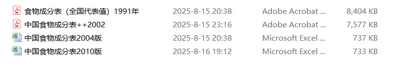 2002/2004版中国食物成分表Excel版本