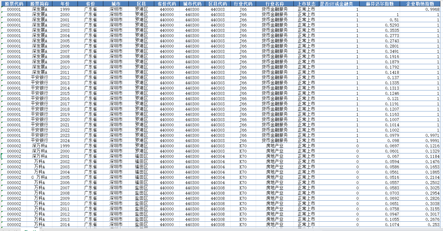 1999-2024年上市公司赫芬达尔指数HHI勒纳指数LI面板数据(excel+dta)