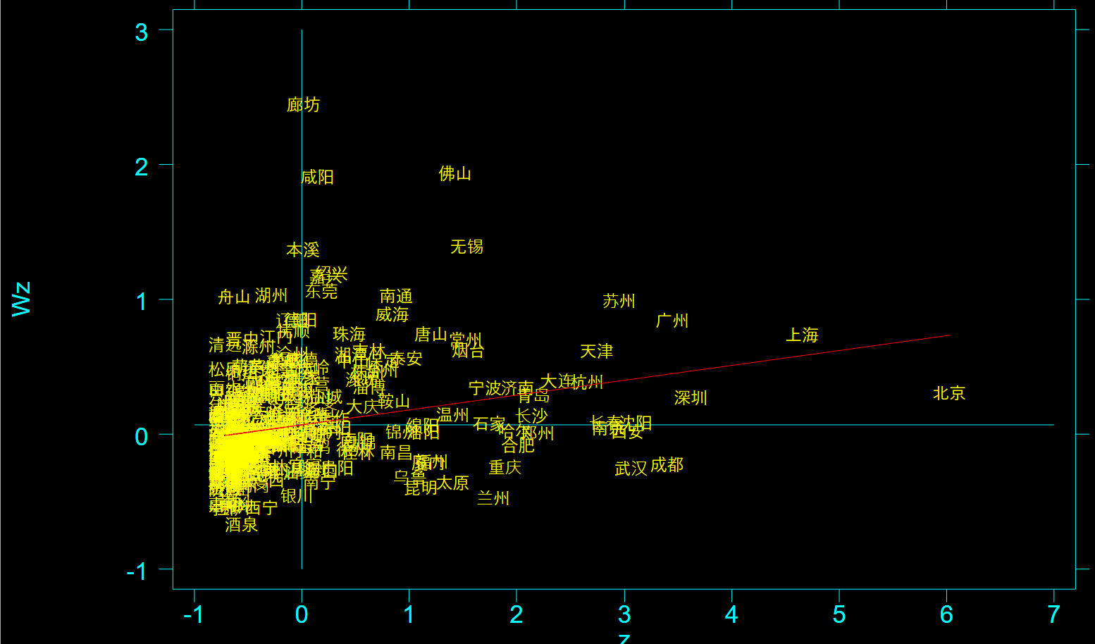只能通过散点图自己统计吗,我的城市数量太多了,散点图重复部分看不清楚,有没有什么办法可以将不同聚集特征的区域统计出来
