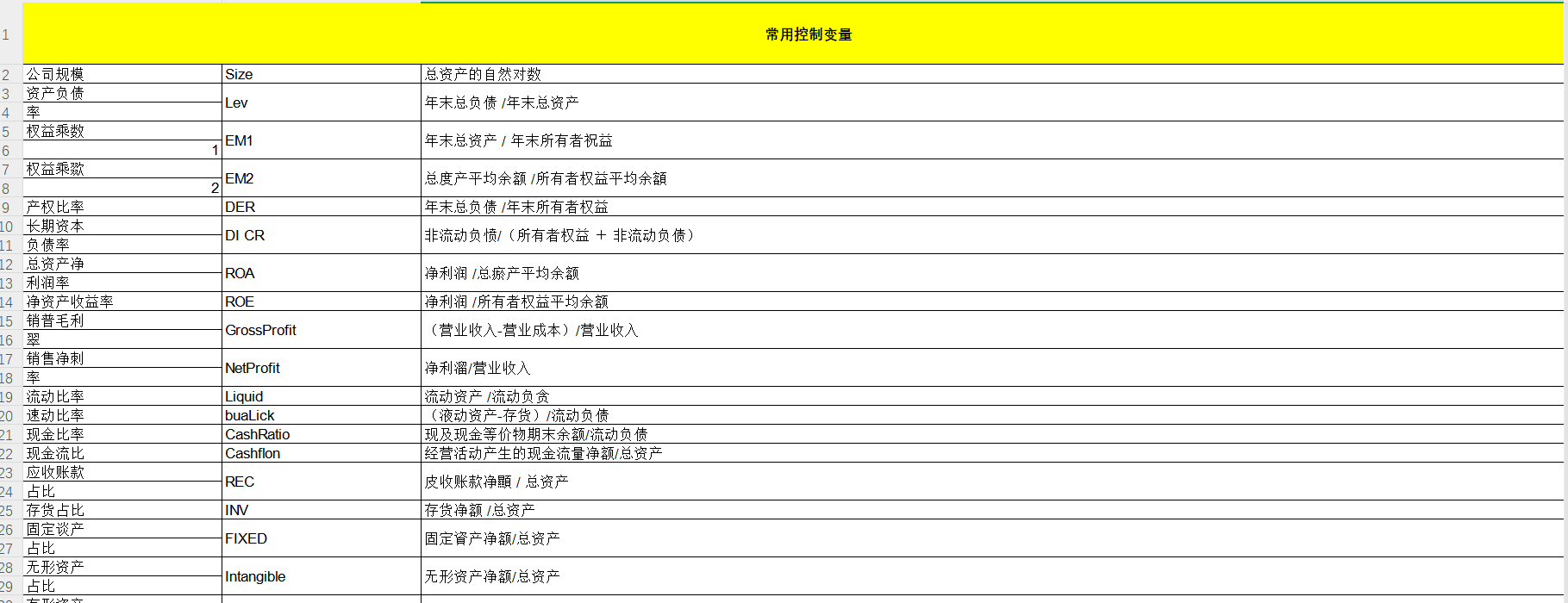 【25整理】上市公司控制变量大全