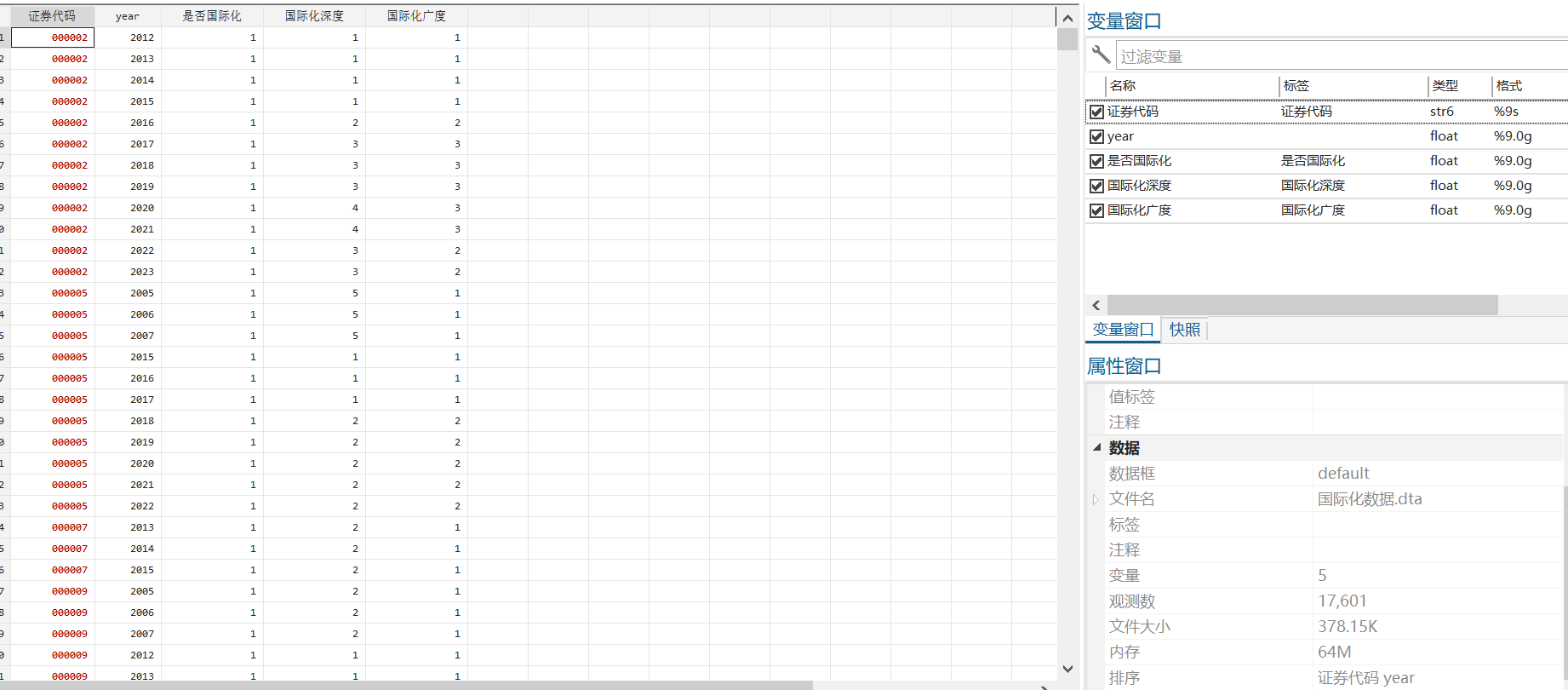 上市公司-国际化深度、国际化广度数据(2005-2024年)