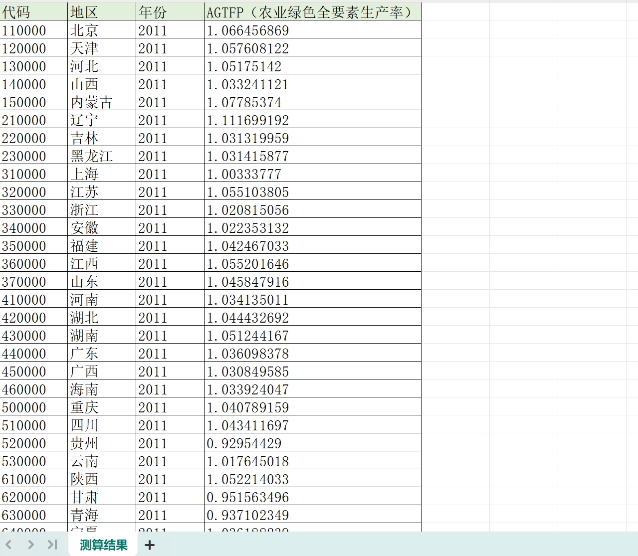 数据名称:省级-农业绿色全要素生产率
