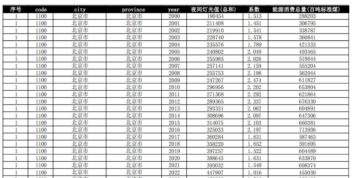 相关数据:序号、省份、地级市、年份、能源消费总量(百吨标准煤)。