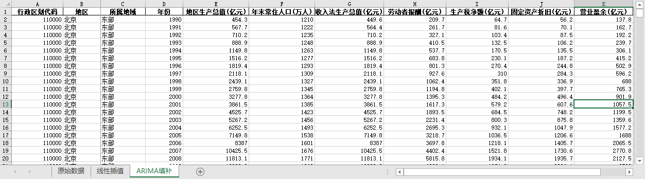 excel数据文件包原始数据(由于多年度指标不同存在缺失值)、线性插值、ARIMA填补三个版本,提供您参考使用。