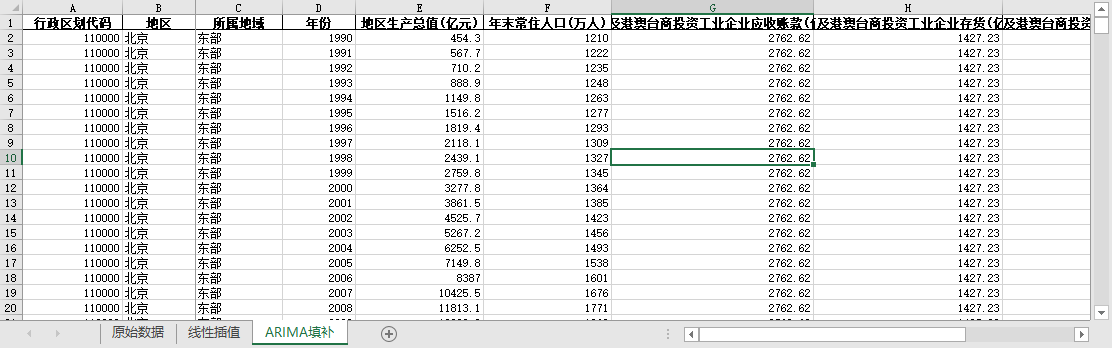 ARIMA填补。基于ARIMA模型,利用同一地区的时间序列数据,对缺失值进行预测填补。
