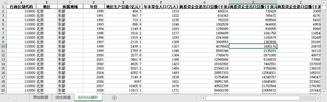ARIMA填补。基于ARIMA模型,利用同一地区的时间序列数据,对缺失值进行预测填补。
