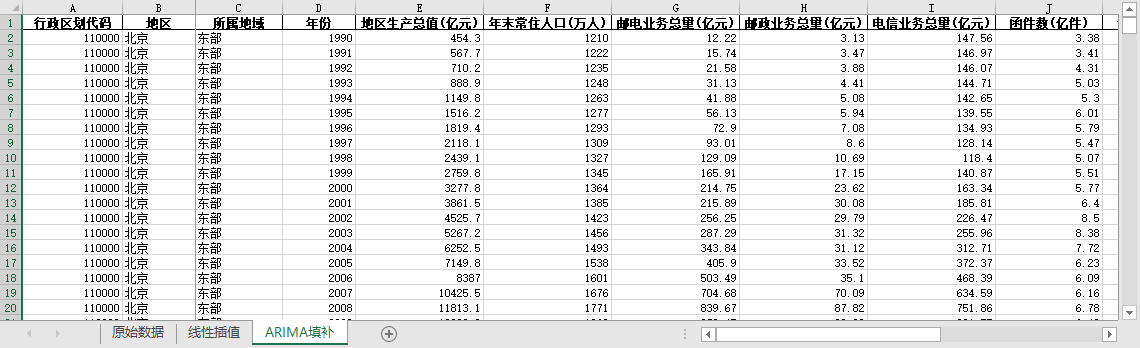 ARIMA填补。基于ARIMA模型,利用同一地区的时间序列数据,对缺失值进行预测填补。
