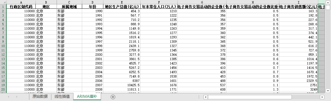 ARIMA填补。基于ARIMA模型,利用同一地区的时间序列数据,对缺失值进行预测填补。