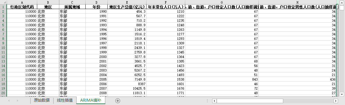 ARIMA填补。基于ARIMA模型,利用同一地区的时间序列数据,对缺失值进行预测填补。