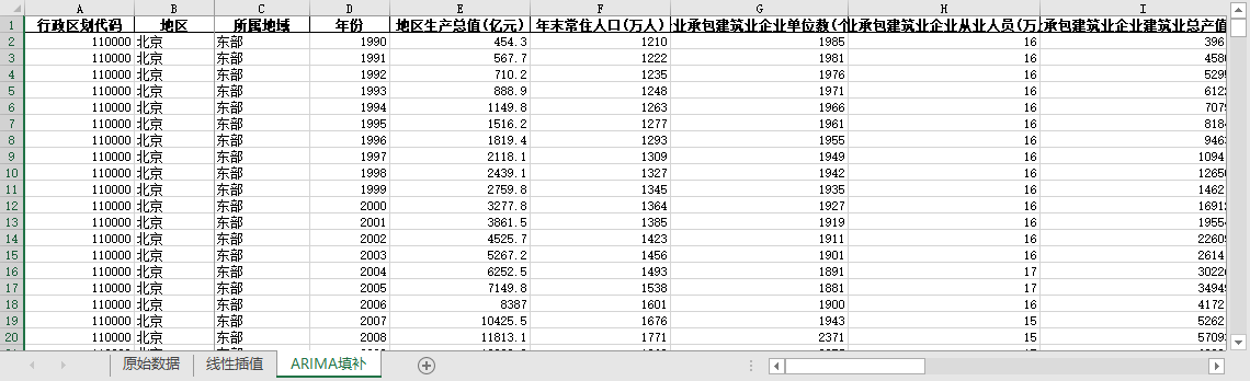 ARIMA填补。基于ARIMA模型,利用同一地区的时间序列数据,对缺失值进行预测填补。