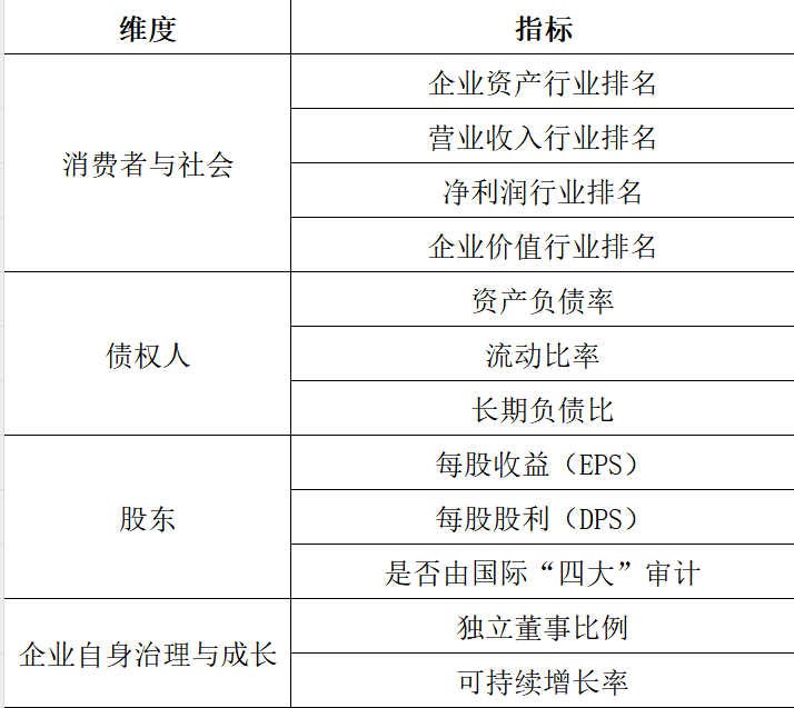 三、计算方式从消费者与社会、债权人、股东、企业自身治理与成长四个维度,选取12个指标,采用因子分析提取公因子,然后得出综合得分,再根据十分位分组,最终赋值 REP=1(最低声誉)至 REP=10(最高声誉)