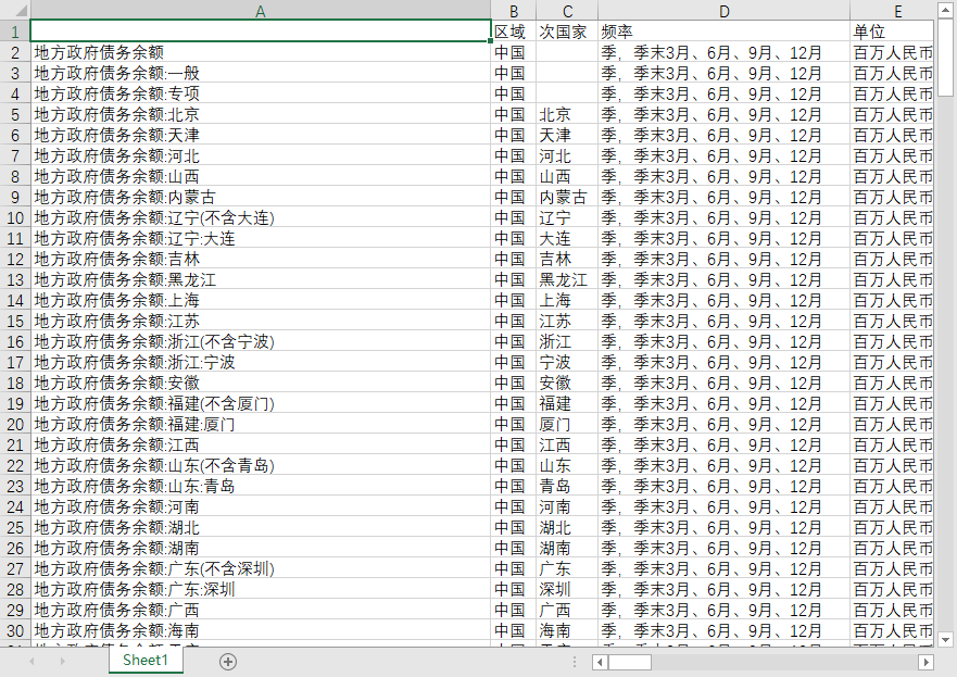 全国各省份地区地方政府债务余额政府债券余额季度2018-202506一般专项
