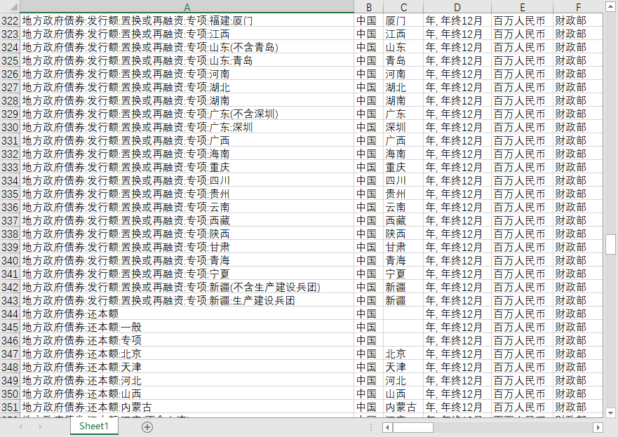 国各省份地区地方政府债券发行额还本额付息额年度2015-2024一股专项.xlsx