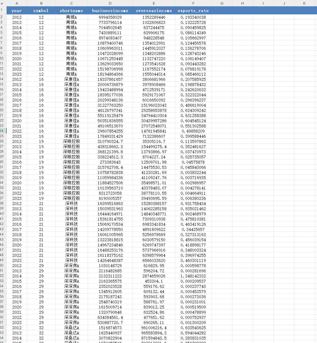 上市公司、年度、企业名称、证券代码、营业收入、海外业务收入、出口指数