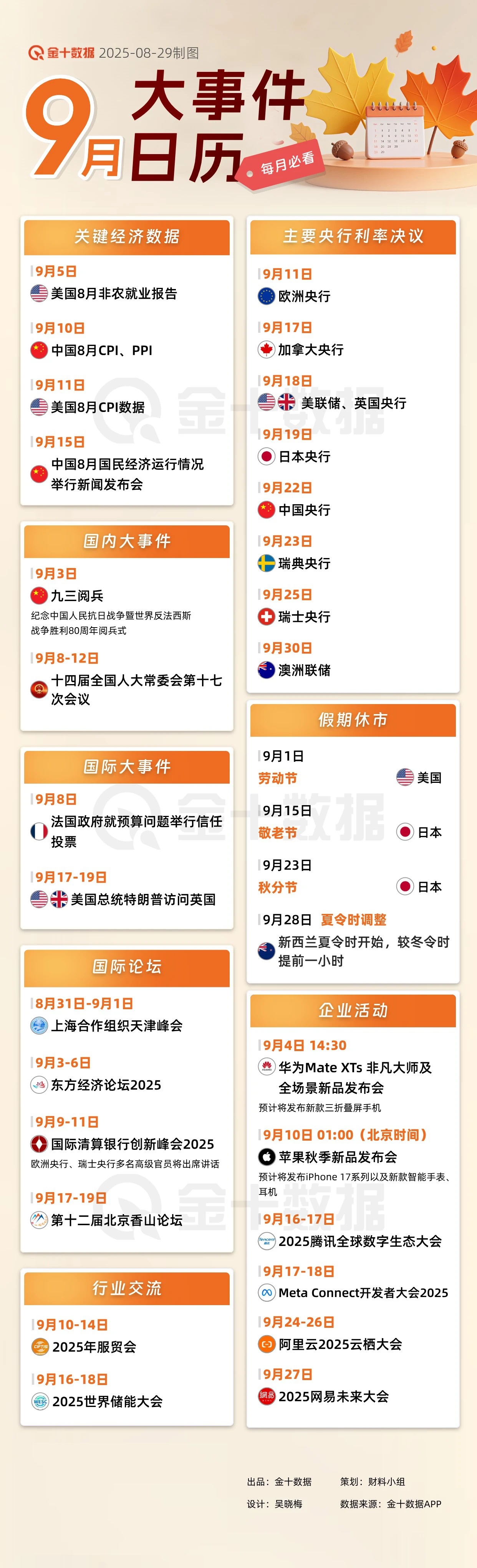 九三阅兵、美联储利率决议、华为苹果新品发布……