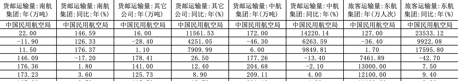 数据来源:国家统计局、中国民用航空局等数据包含:飞机日利用率和航班效率、航空(集团)运输生产情况、航空公司投放运力、航油价格、货运量、客运量、运输飞机数量、运输总周转量