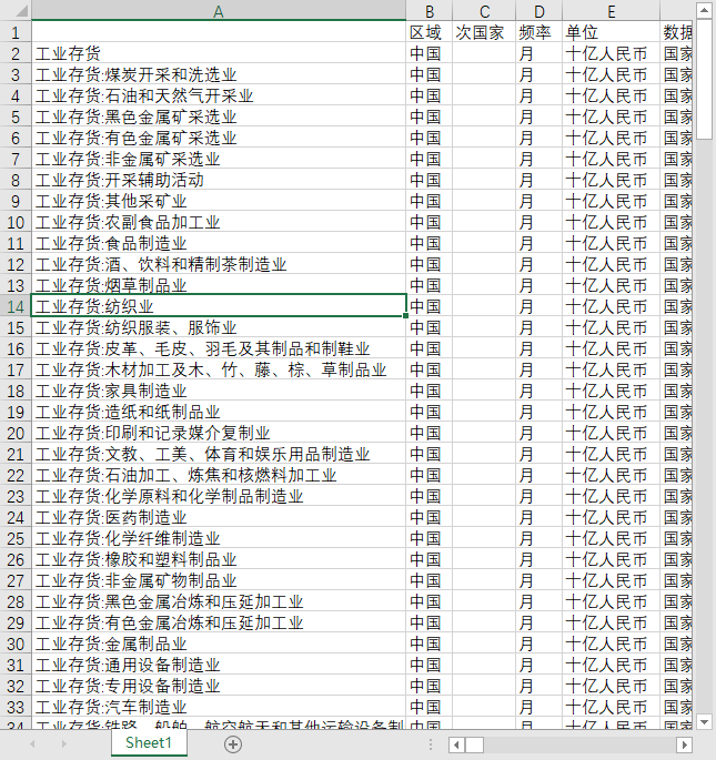 工业存货:产成品:皮革、毛皮、羽毛及其制品和制鞋业