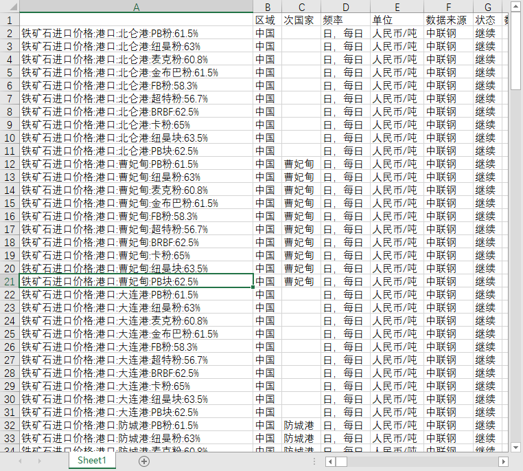 铁矿石进口价格:港口:北仑港:PB块:62.5%