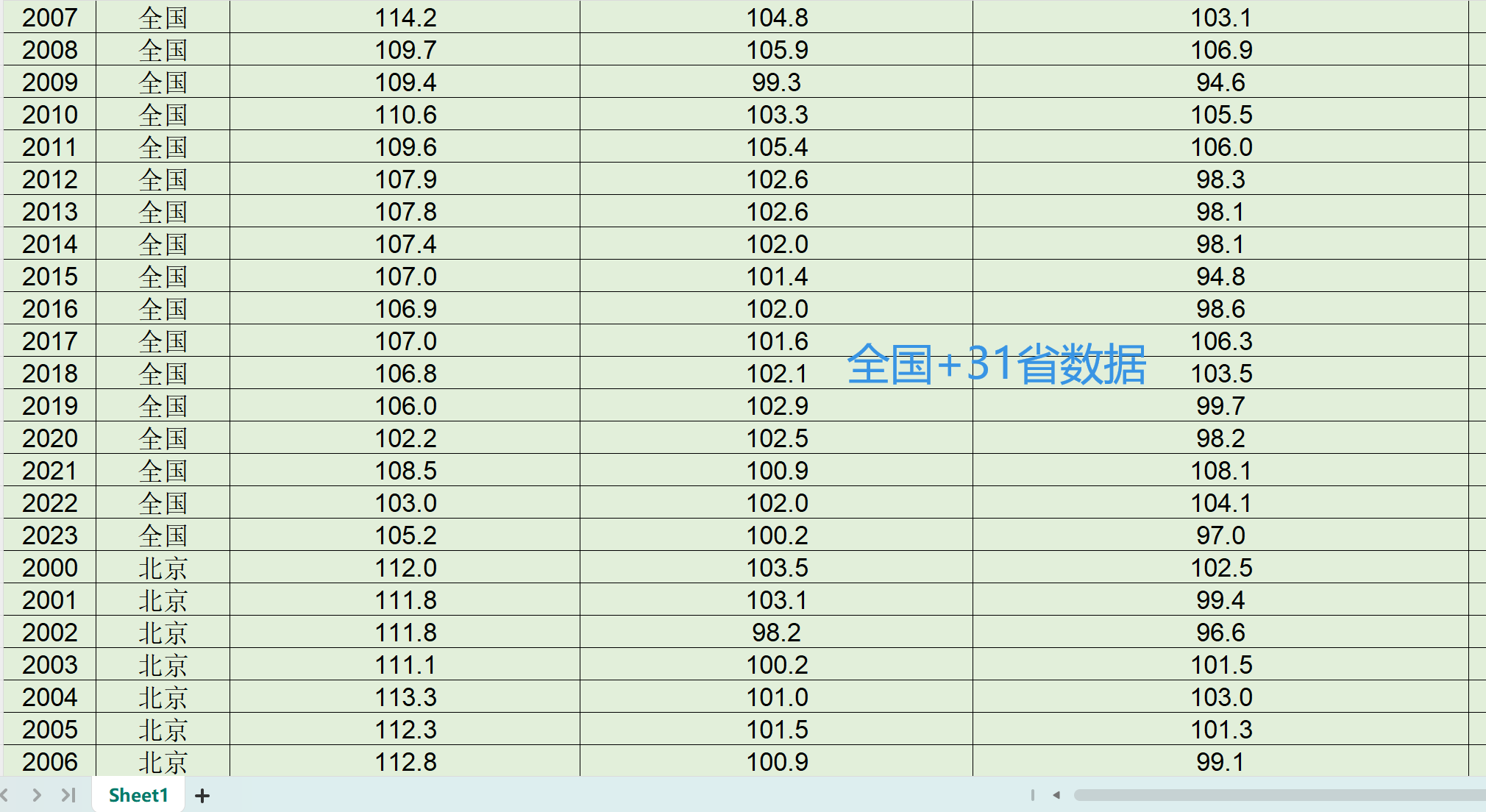 2000-2023年全国各省、地级市居民消费价格指数CPI、各省通货膨胀率