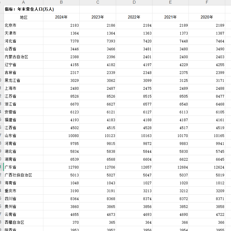 【更新至2024年】2000-2024年各省年末常住人口数据(无缺失)