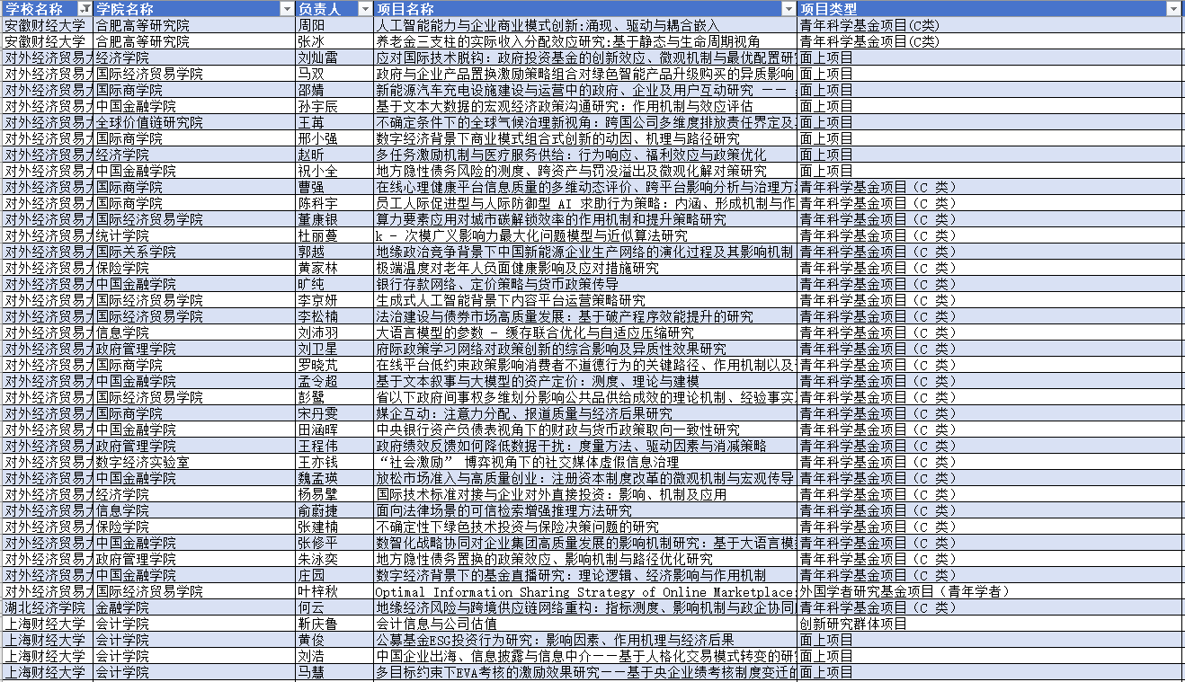 数据指标学校名称  | 学院名称  | 负责人  | 项目名称  | 项目类型  | 批准经费(万元)  |