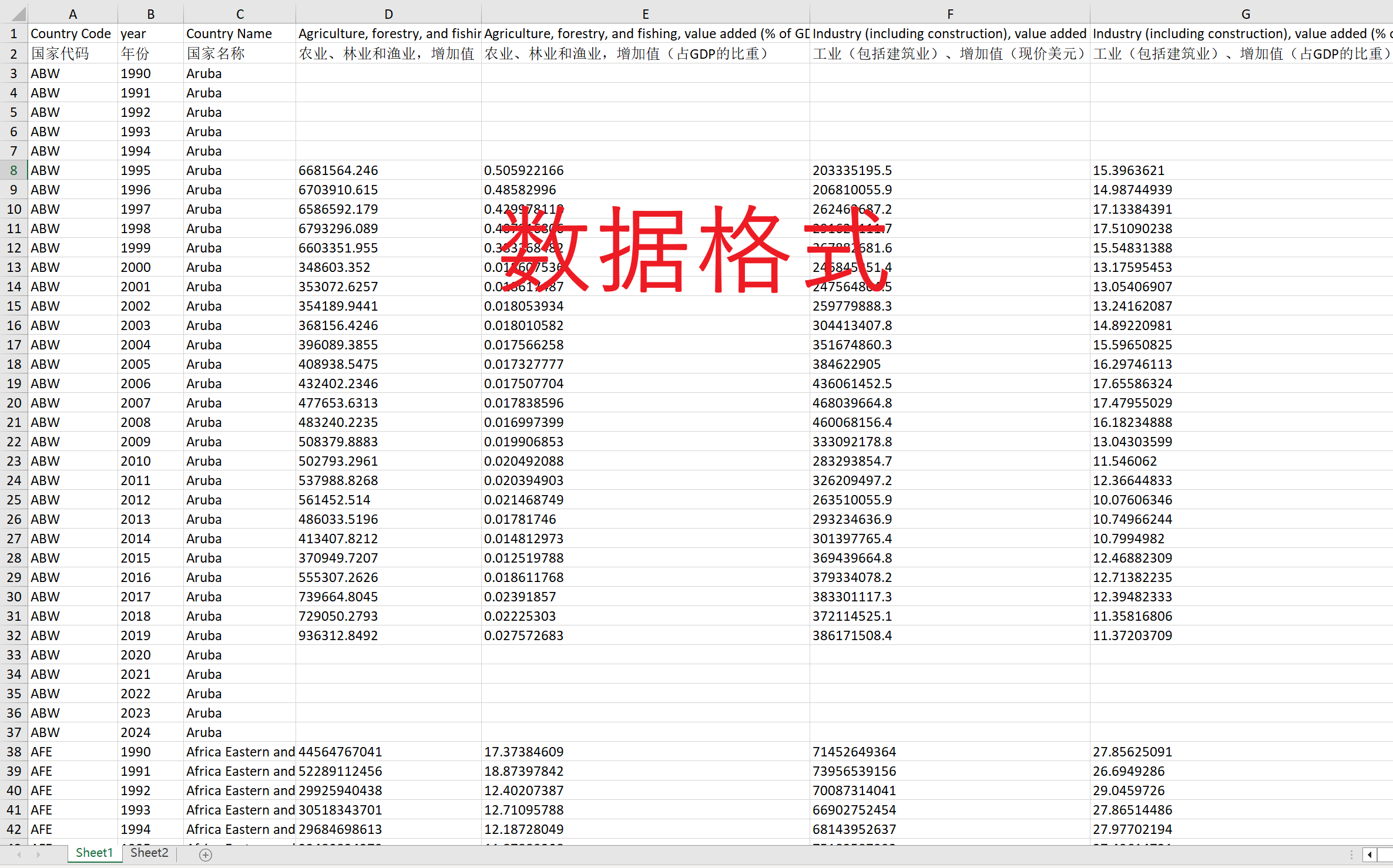 | Agriculture, forestry, and fishing, value added (% of GDP) | 农业、林业和渔业,增加值(占GDP的比重) |