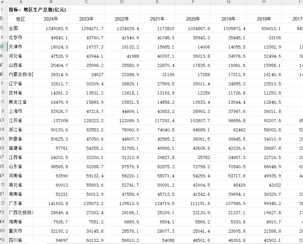 1992-2024年各省国内生产总值及分三次产业增加值:第一产业增加值、第二产业增加值、第三产业增加值数据