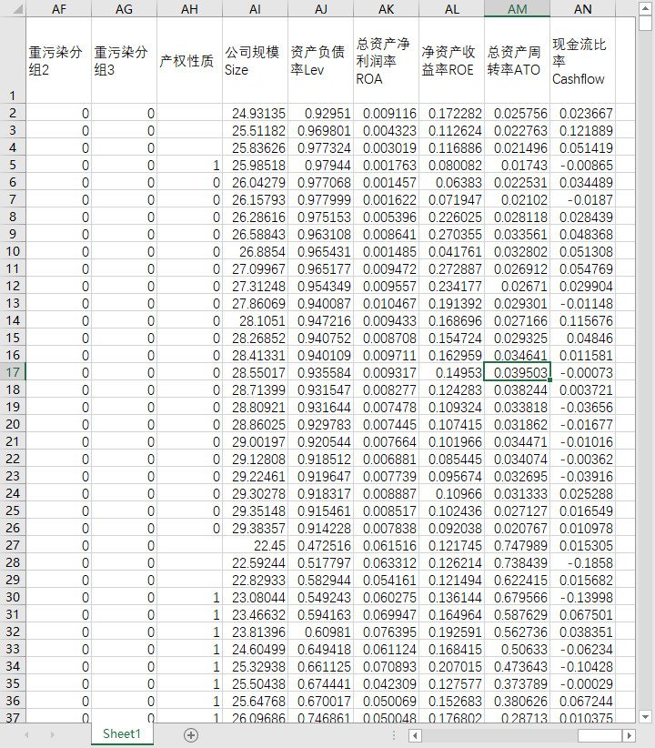 股票代码 年份 股票简称 行业名称 行业代码 制造业取两位代码,其他行业用大类 所属省份代码 所属省份 所属城市代码 所属城市 是否stpt 是否金融 是否制造业 是否深证上市 是否上证上市 是否沪深上市 是否北证上市 是否创业板 是否科创板 是否所属西部 是否所属东部 是否所属中部 高科技行业分组1 高科技行业分组2 高科技行业分组3 高科技行业分组4 高科技行业分组5 技术密集型 资产密集型 劳动密集型 重污染分组1 重污染分组2 重污染分组3 产权性质 公司规模Size 资产负债率Lev 总资产净利润率ROA 净资产收益率ROE 总资产周转率ATO 现金流比率Cashflow