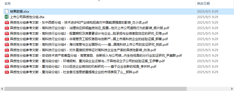 上市公司企业异质性分组变量2000-2024高科技技术密集型资产密集型劳动密集型重污染产权性质是否stpt金融制造业所属省份城市