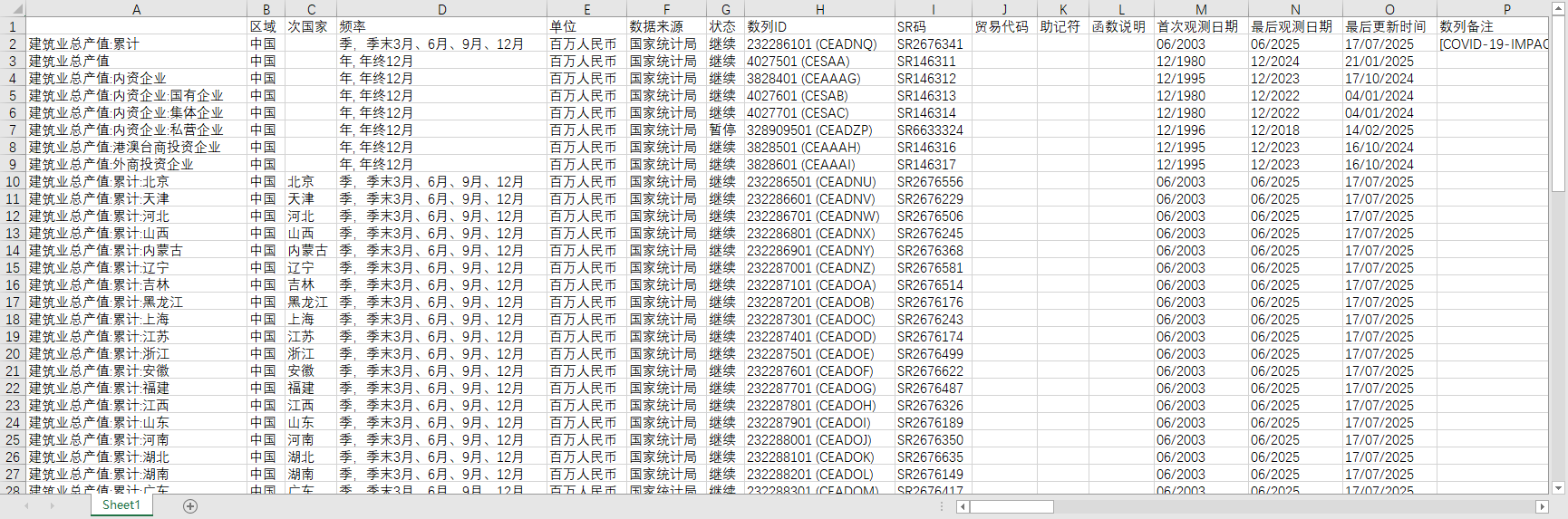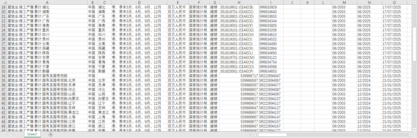 全国建筑业总产值竣工产值分省份地区2003-202506季度1996-2024年度国有控股