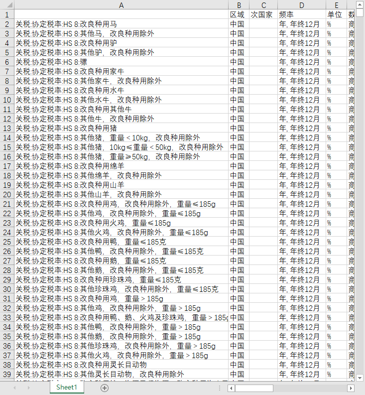 美国对华中国关税按HS8位编码商品分类协定税率2020-2024美国从中国进口海关中国出口美国