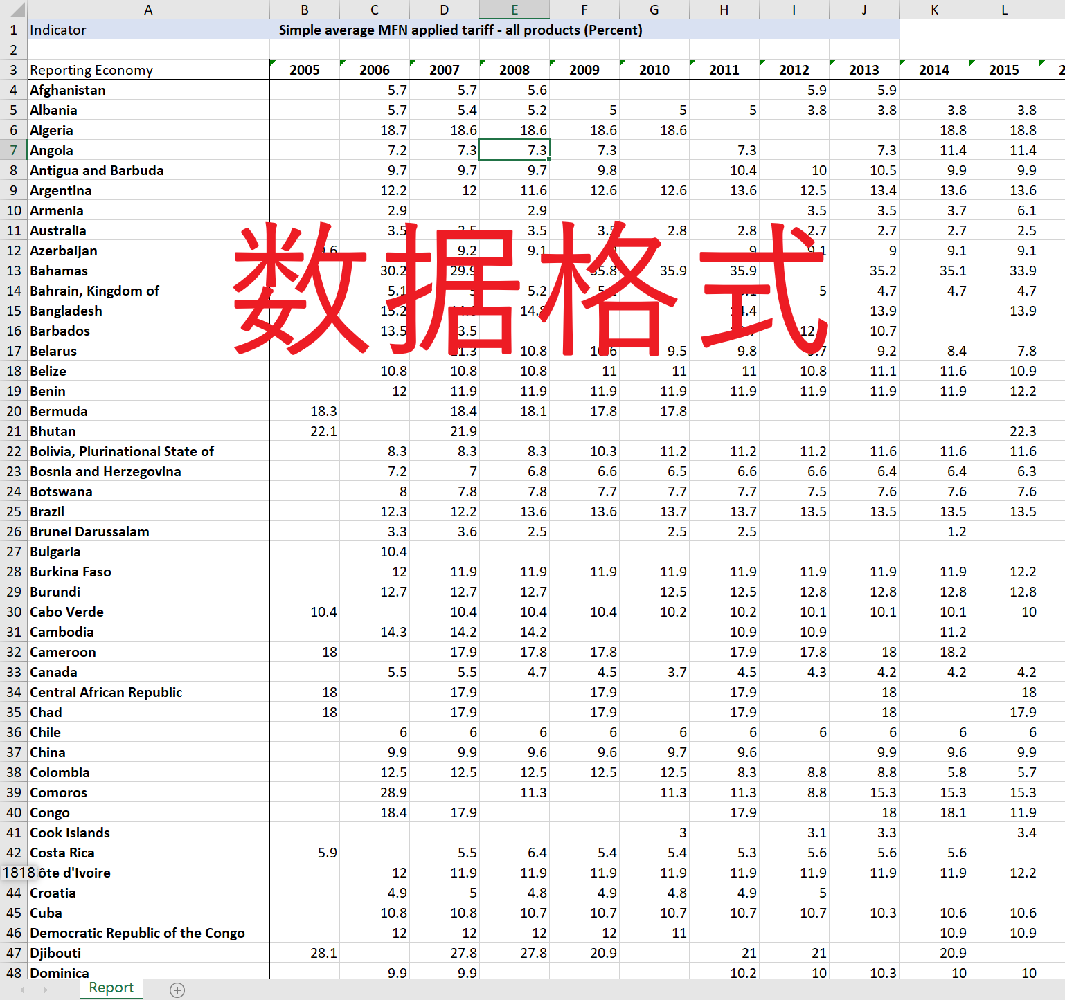 2005-2024年/各国农产品最惠国关税/各国所有产品最惠国关税等最新数据!!含160多个国家!