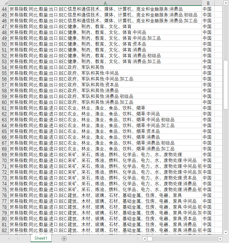 BEC:健康、制药、教育、文化、体育:中间品:加工品