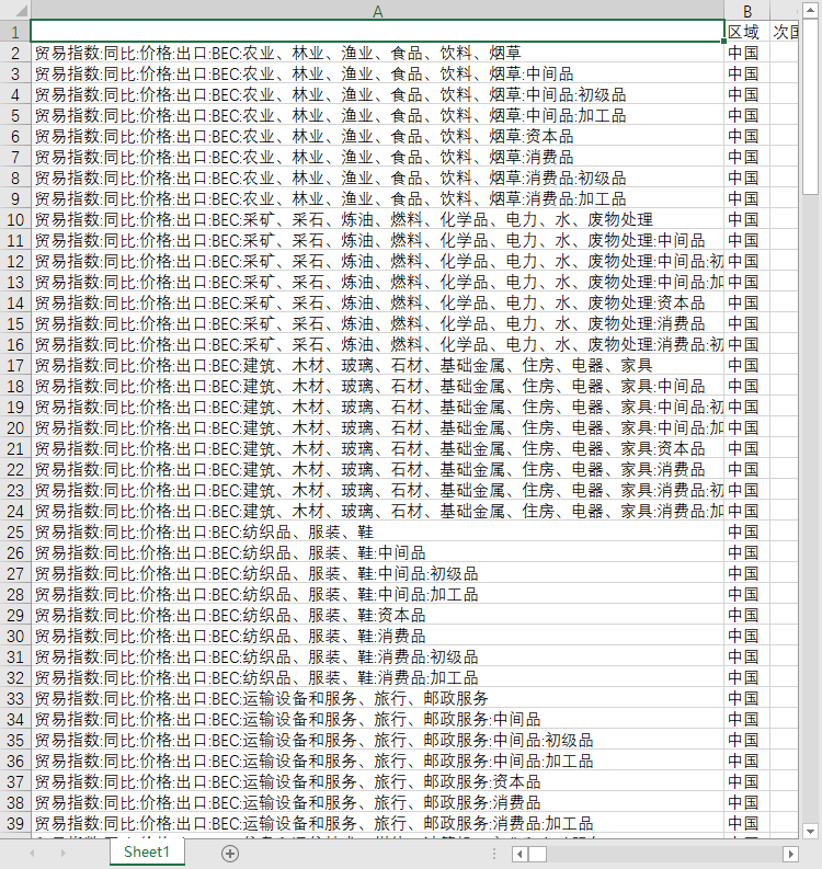 BEC:农业、林业、渔业、食品、饮料、烟草:中间品:初级品