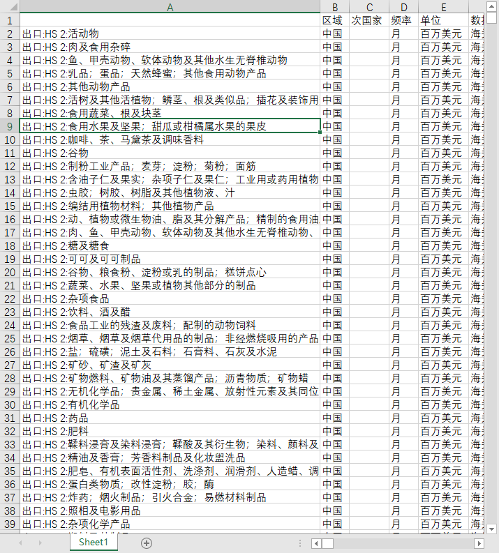 中国全国进出口贸易额HS2位编码分类全球世界各国地区2001-202506月度数据