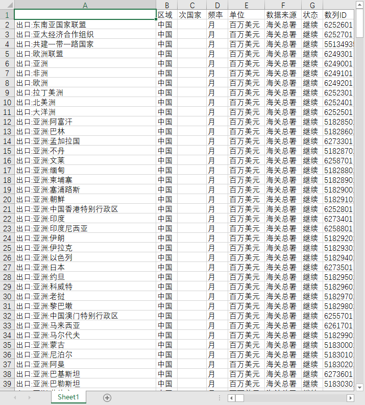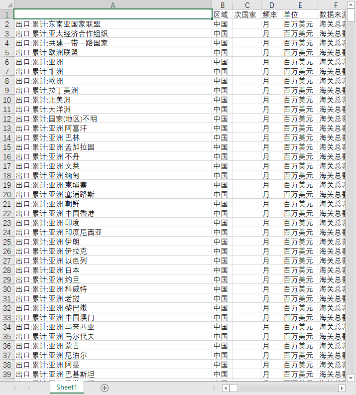 中国全国进出口贸易金额分全球世界各国地区当月、及1-当月累计1993-202507月度数据