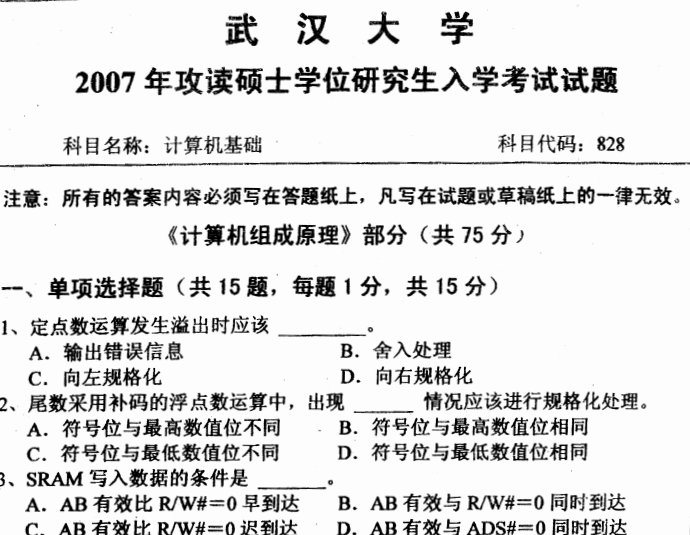 武汉大学计算机基础考研真题2007无答案