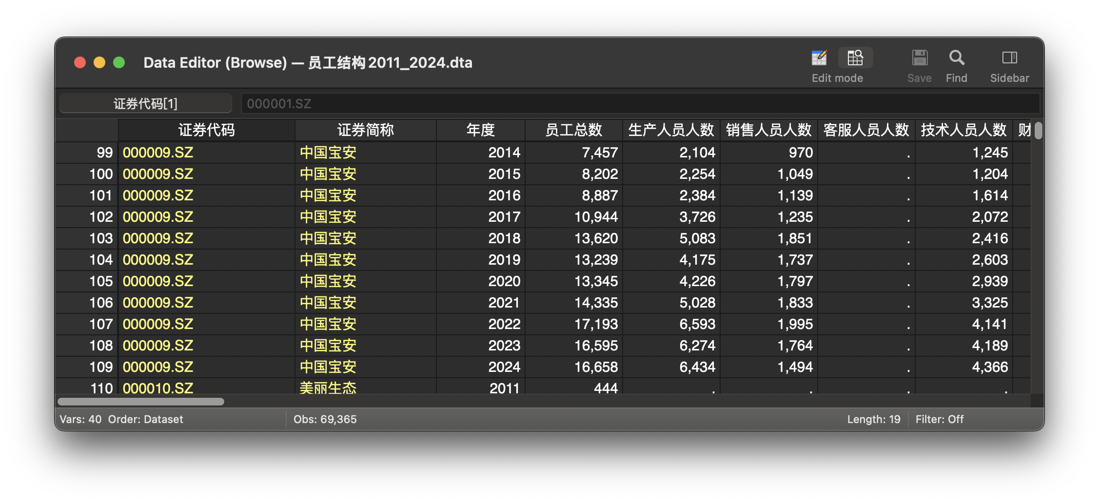 | 基本信息 | 证券代码、证券简称、年度、员工总数 |