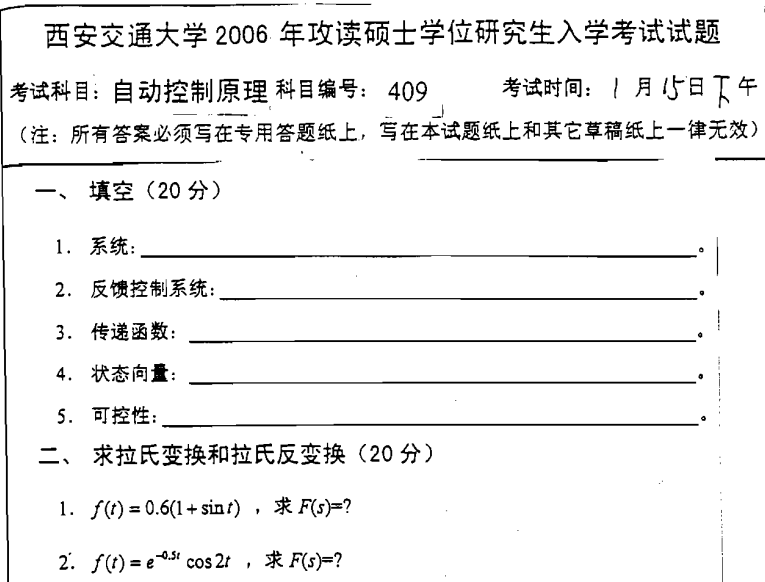 西安交通大学811自动控制原理与信号与系统2003-2005、2007-2008考研真题汇编.