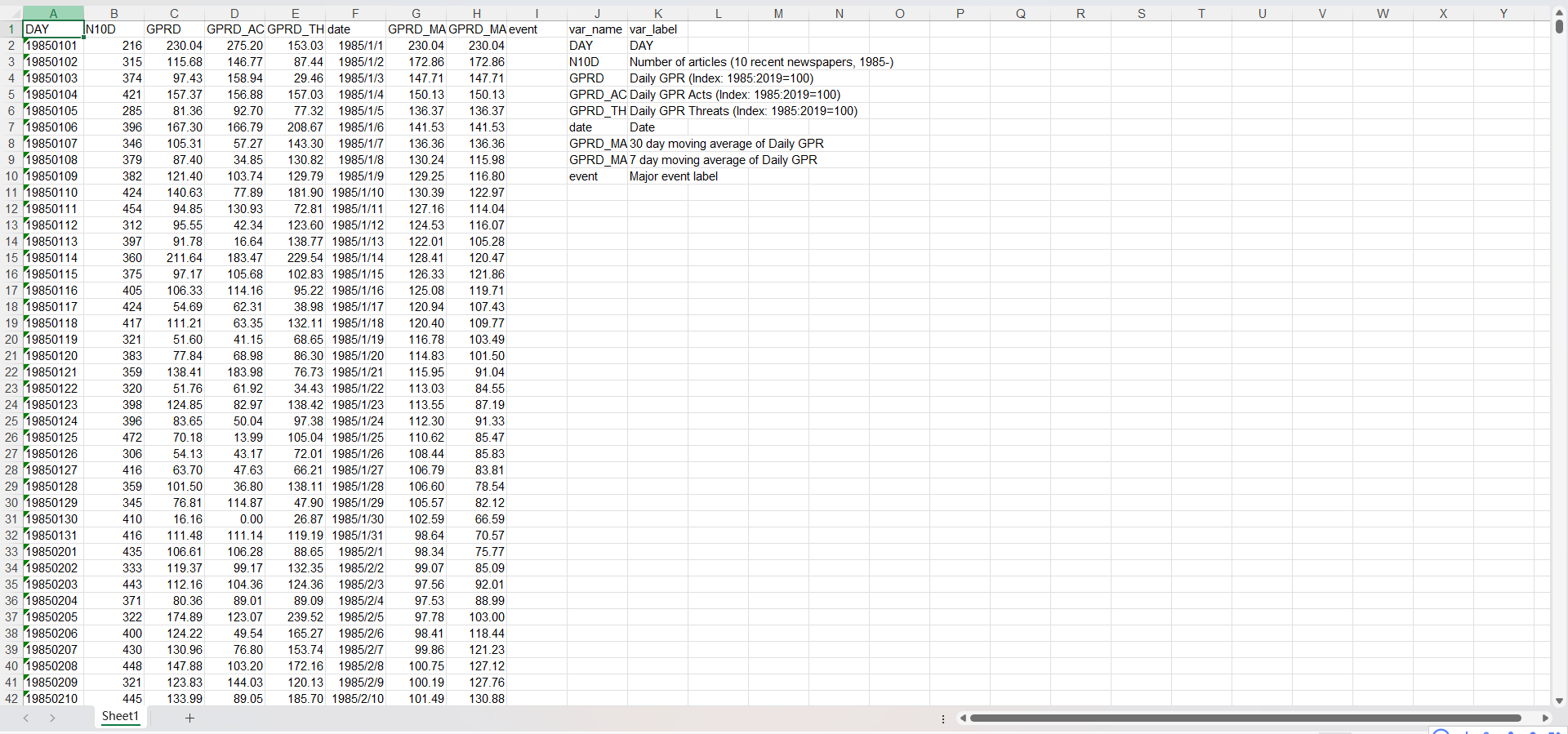 Recent GPR Index including Excluded Words | Historical GPR Index | Historical Basic GPR Index |