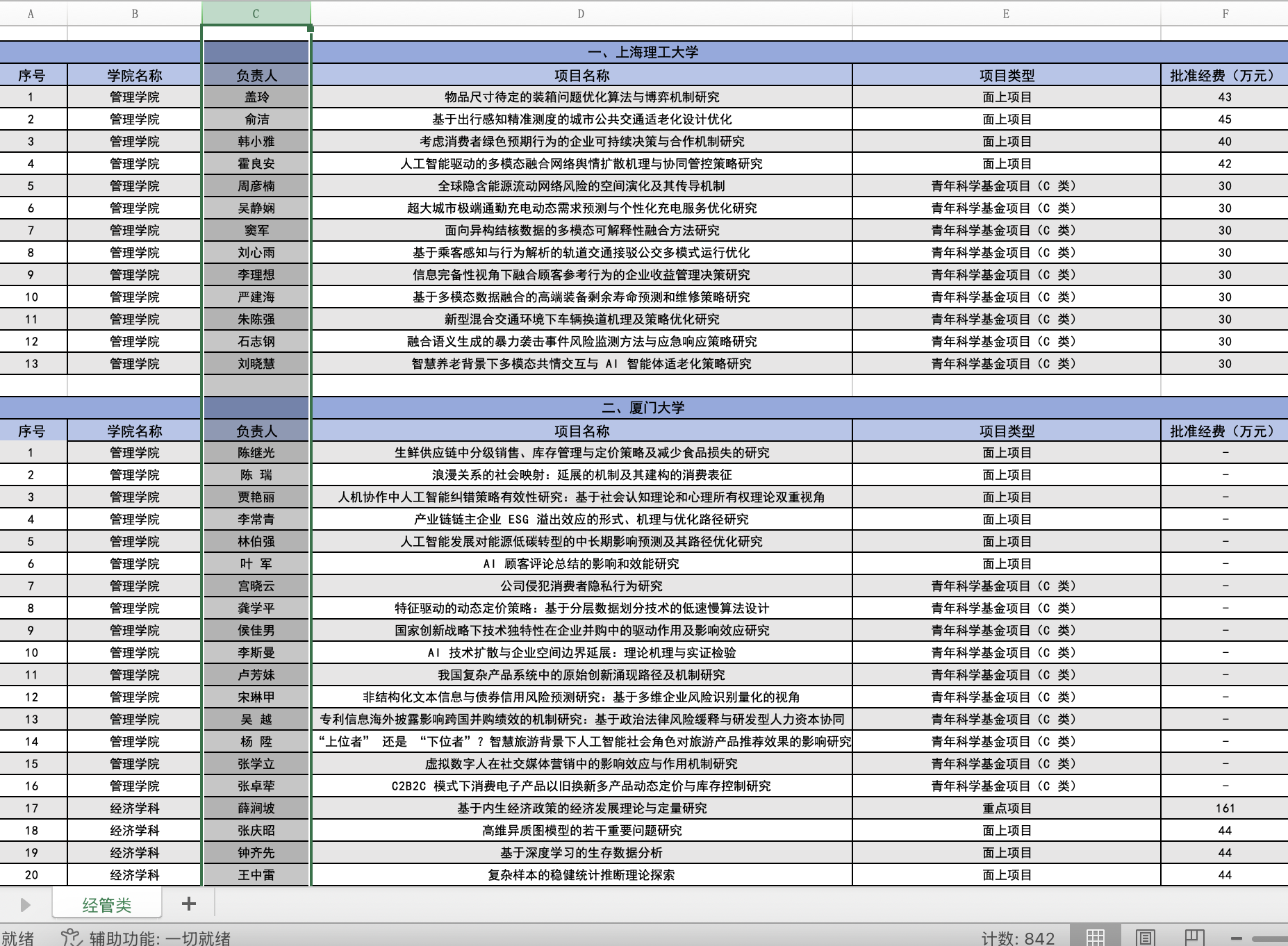 2025年全国经管类国家自然科学基金立项名单(763项,含项目类别经费)