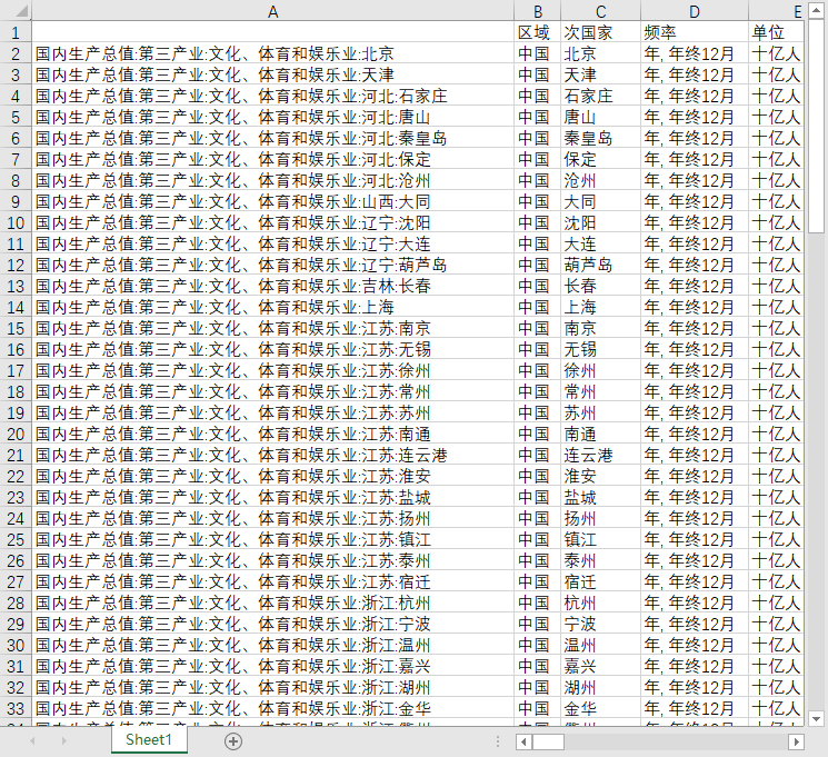 地区GDP国内生产总值105个地级市城市第三产业文化、体育和娱乐业2010-2023年度数据