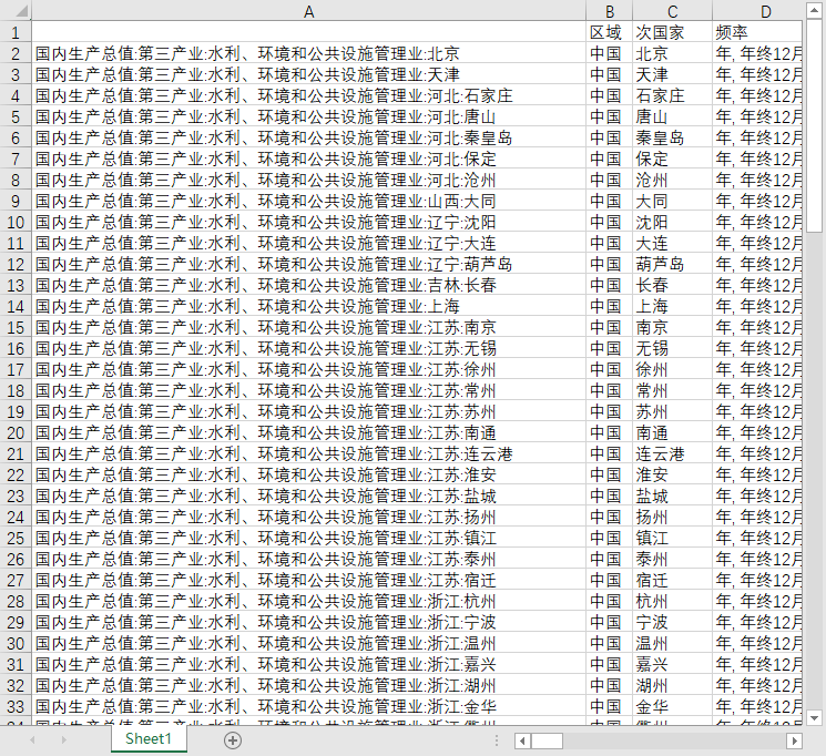 地区GDP国内生产总值105个地级市城市第三产业水利、环境和公共设施管理业2010-2023年度数据