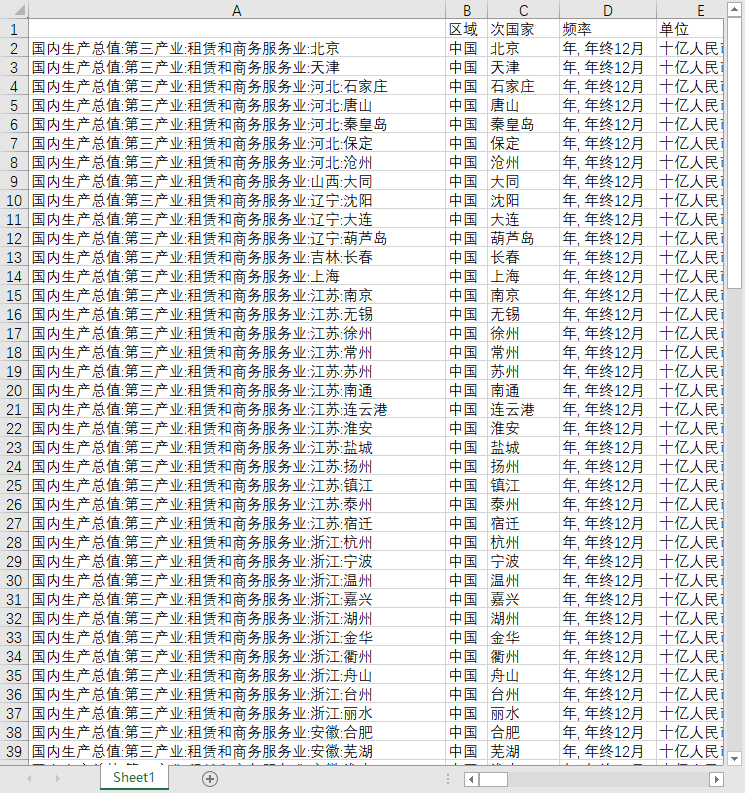 地区GDP国内生产总值104个地级市城市第三产业租赁和商务服务业2010-2023年度数据