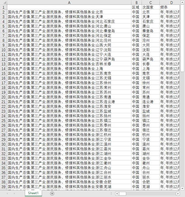地区GDP国内生产总值104个地级市城市第三产业居民服务、修理和其他服务业2010-2023年度数据