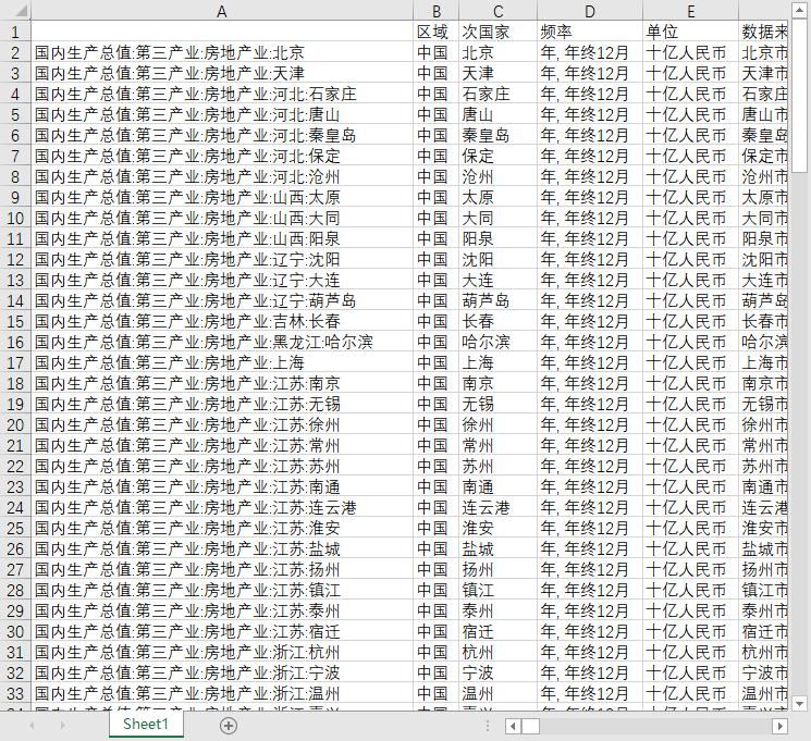 地区GDP国内生产总值143个地级市城市第三产业房地产业2010-2023年度数据