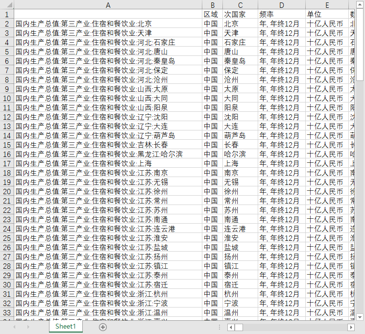 地区GDP国内生产总值137个地级市城市第三产业住宿和餐饮业2010-2023年度数据