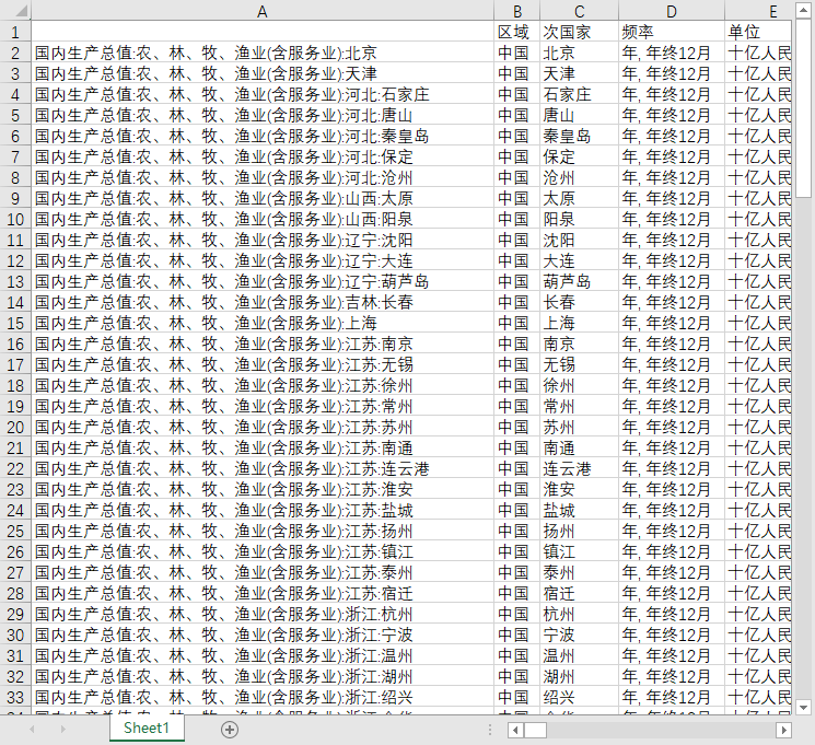 地区GDP国内生产总值124个地级市城市农、林、牧、渔业(含服务业)2010-2023年度数据