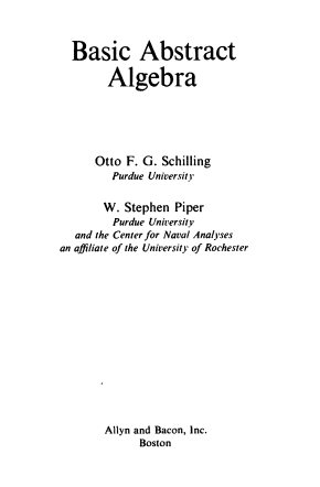 Basic Abstract Algebra-Otto F. Schilling, W. Stephen Piper.zip